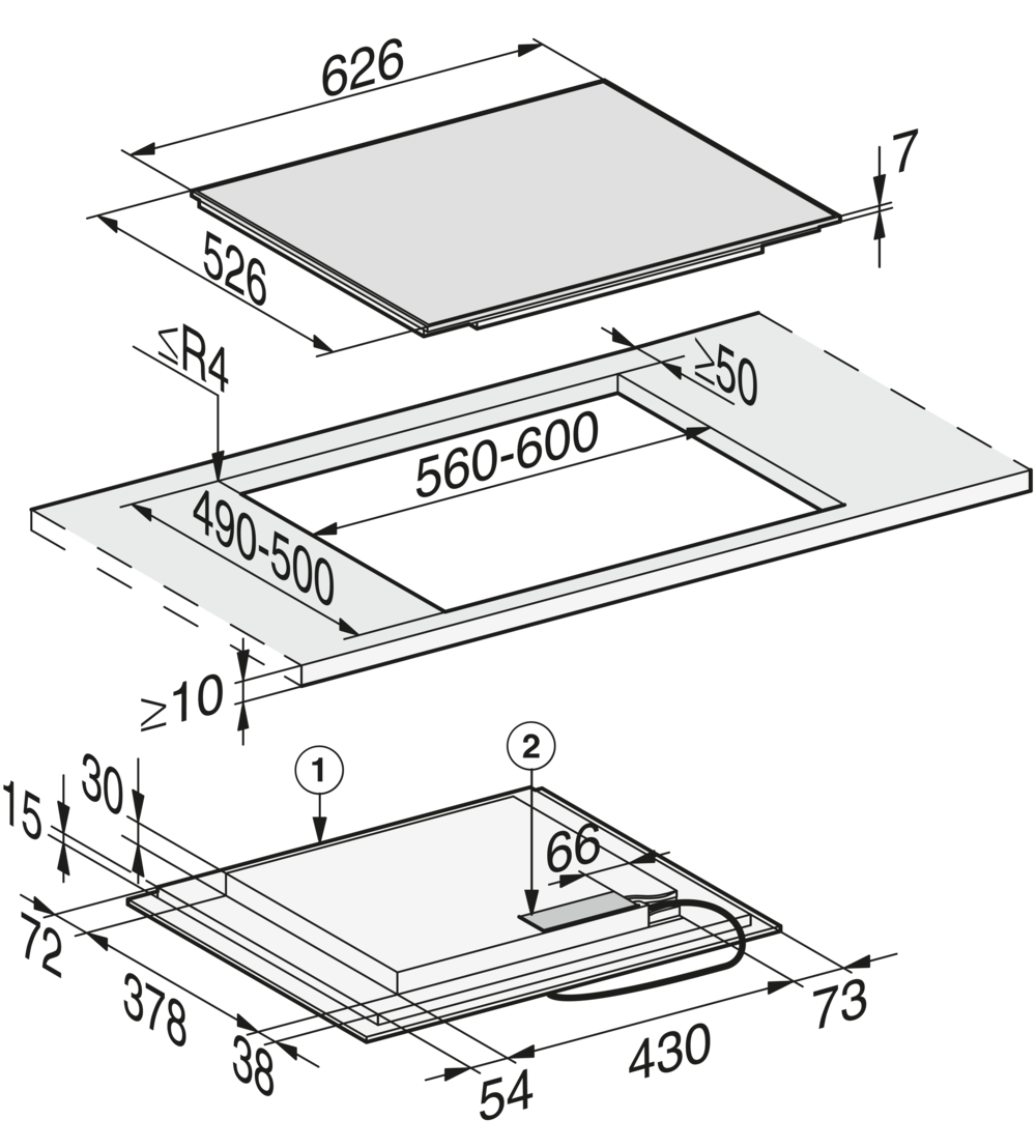 Внешние размеры выреза в мм (ширина) для встраивания заподлицо